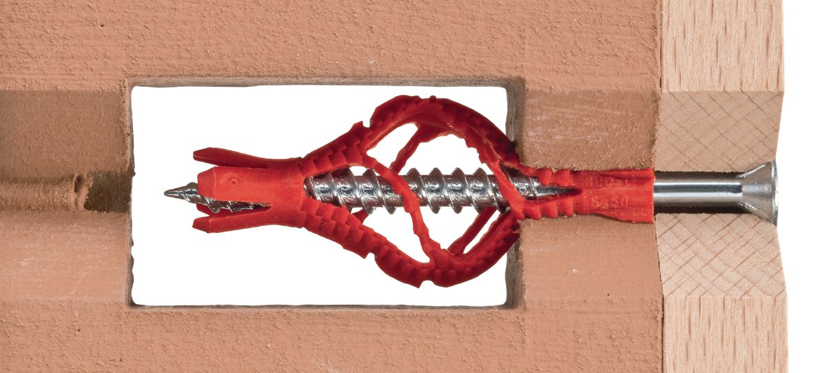 - Optimised installation – anti-twist design with redesigned fins helps prevent rotation during screwdriving for a faster and safer setup, especially in hollow bricks and aerated concrete